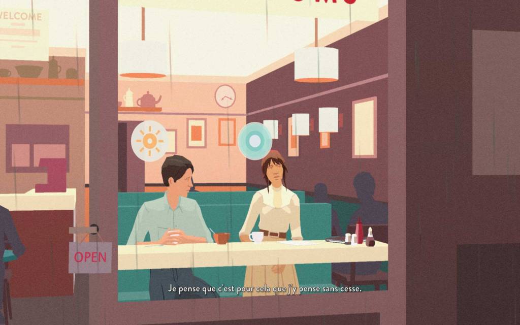 Le style minimaliste aux allures de dessins vectoriels reflète l’ambiance douce et paisible que ce jeu dégage, malgré les thèmes abordés qui sont eux d’un ton plus grave pour certains.