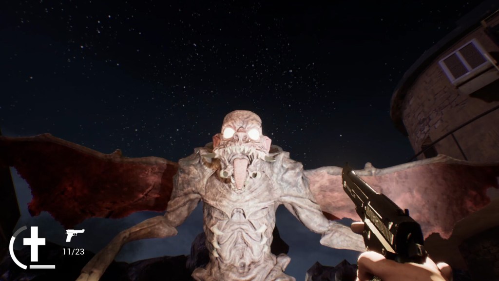 Personnellement, c’est ce côté rétro/old school qui m’a attiré au premier coup d’oeil vers ce jeu. Le fait de retrouver un univers que j’adore, à savoir les années 80 avec leur lot de bons navets, était comme une évidence de ce fait pour tester ce jeu. Les vampires n’ont rien de bien vampire à mon goût, et si vous pensiez que ceux de Redfall étaient mauvais, c’est que vous n’avez pas encore mis la main sur ce jeu. Ici, les vampires ne mordent pas, ils vous tabassent avec leurs griffes, et autant dire qu’ils font très mal. De plus, vous vous retrouverez facilement piégés s’ils sont deux ou trois autour de vous, et vous devrez recommencer un certain nombre de fois des stages pour pouvoir les terminer. Croyez-moi quand je vous dis que ce jeu risque de bien vous faire rager.